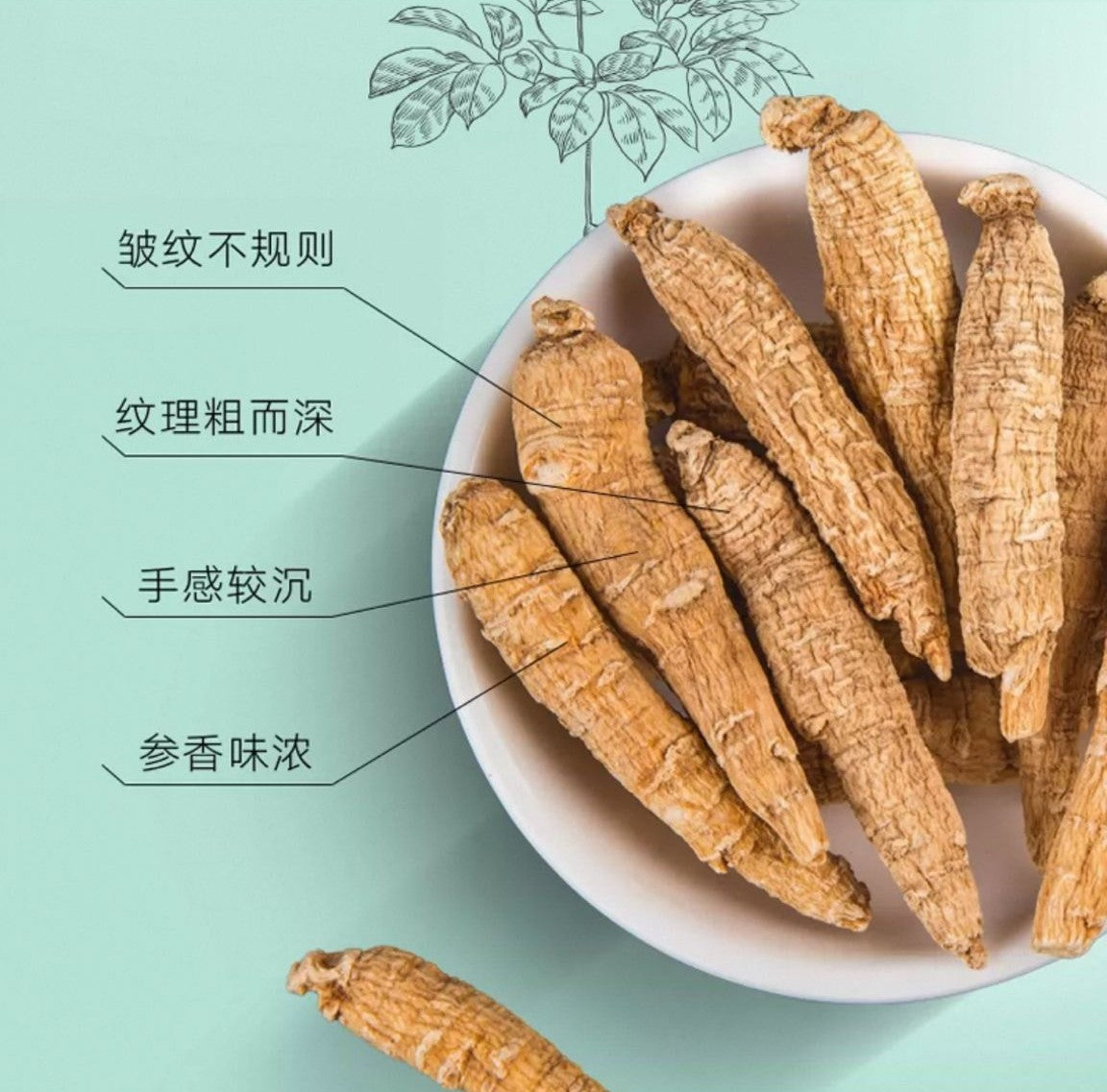 纹理粗深、皱纹自然不规则,手感较沉,体现参须本色。