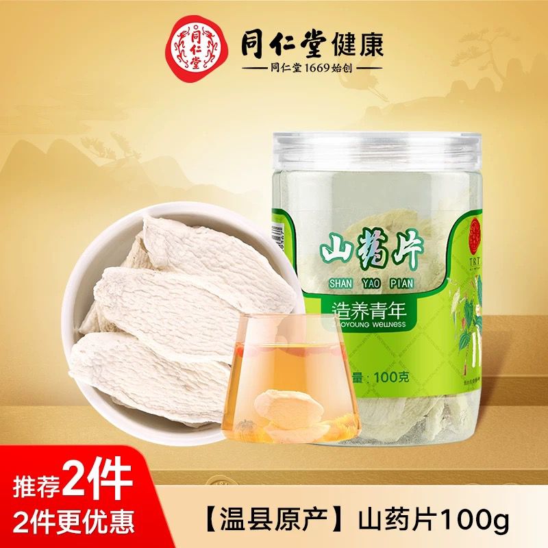 北京同仁堂 Tong Ren Tang|造养青年 山药片 100g Shan Yao Pian|铁棍山药 质地饱满|健脾养胃 粥汤皆宜