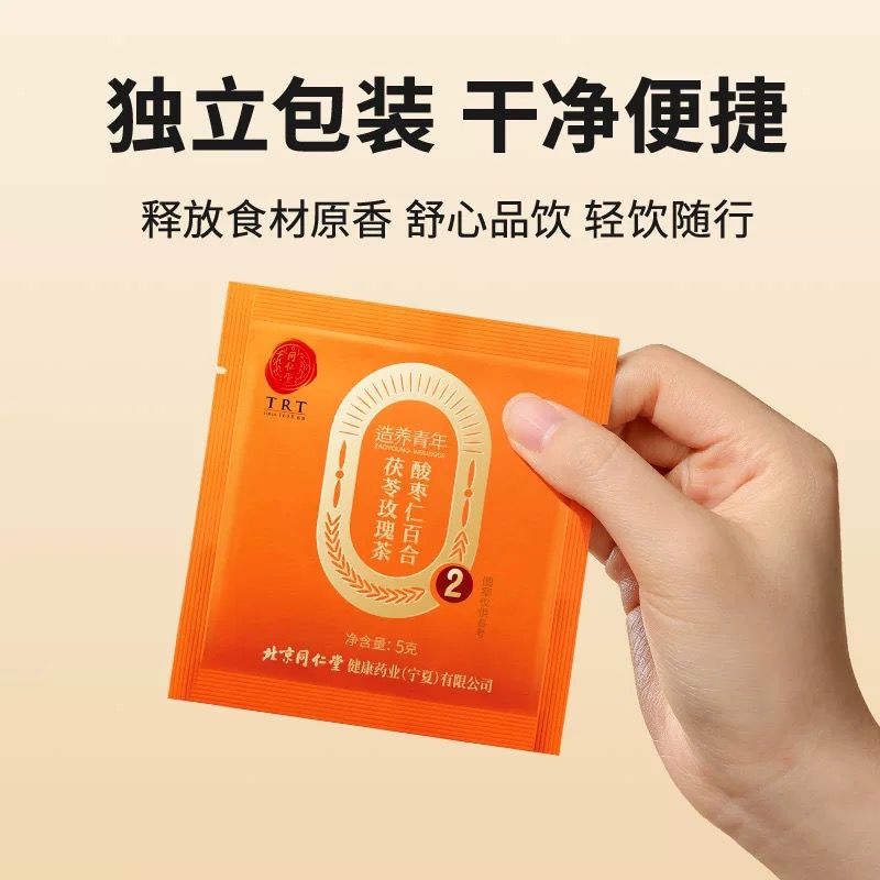 北京同仁堂 Tong Ren Tang|造养青年 酸枣仁百合茯苓玫瑰茶养生茶 75g(5g x 15包)Sour Jujube Lily Poria and Dried Rose Herbal Tea|安心草本 调和日常|清润助眠 四季皆宜