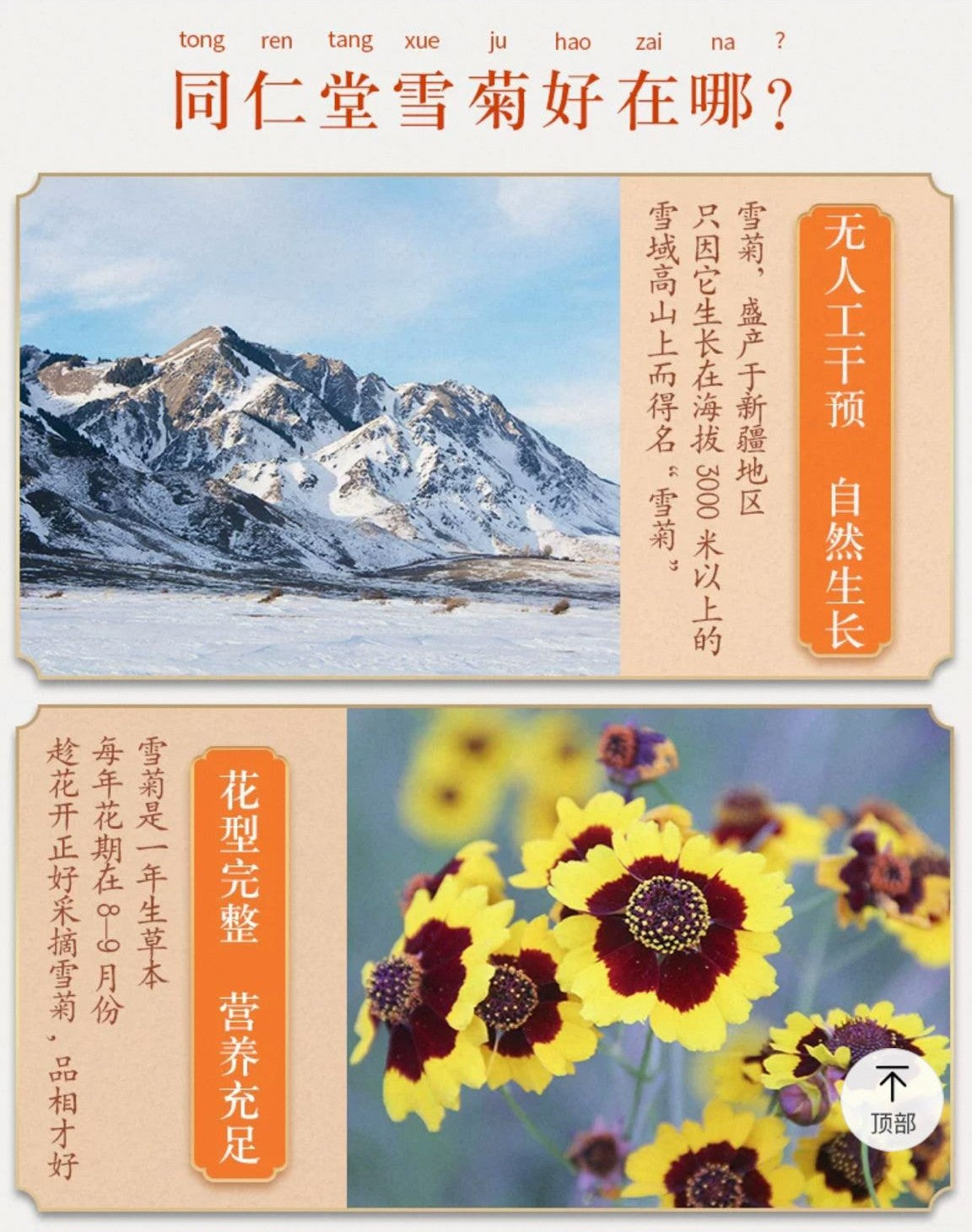 北京同仁堂 Tong Ren Tang | 雪菊 50g Snow Chrysanthemum | 新疆雪域采摘 | 淡雅花香 回甘悠长